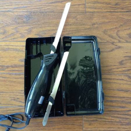 Servappetit electric carving knife set. Storage case, 2 sets of blades, AC power cord. 100 watts. Black. Model 23042. NEW in original box. 12x6x3 @ 2 lbs.
