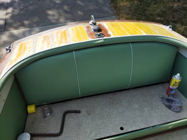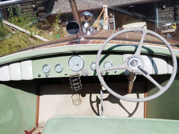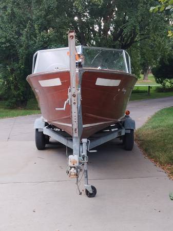 A solid old lake queen. 99% original. Will need revarnishing. Nice galvanized Dilly tandem axle trailer. Make a reasonable offer. CASH only.