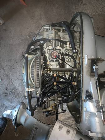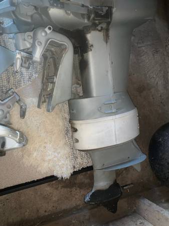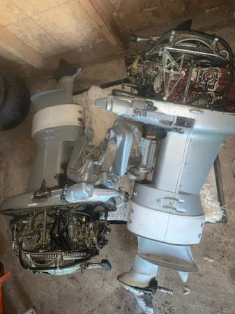 These engines were removed from a 1959 Corning runabout. Both have compression and are great for parts or rebuild. One is missing the starter, One has a hole in the fiberglass lid as shown. Neither has a prop attached.