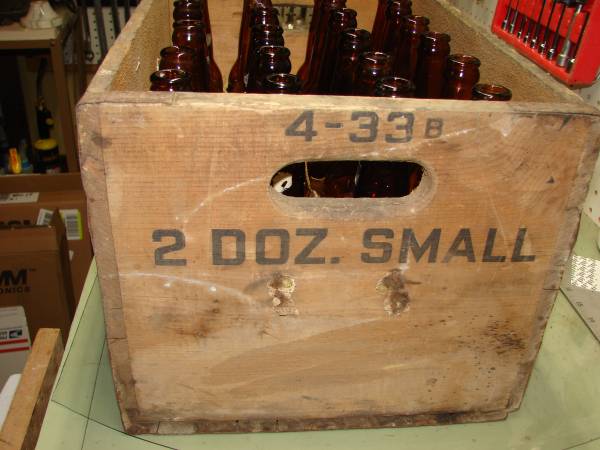 CASE CONDITION: Very Good Condition especially for a wooden case that is over 90 years old. The text is clean and clearly legible as shown in the pics. The case wood is solid and sturdy with metal strapped corners. The 1935 Old Milwaukee bottles were used in this older case.