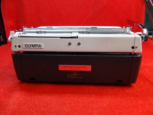 This Olympia Deluxe Manual Portable SM9 #4718177 has been chemically cleaned, lubricated, and adjusted to function as is was when new. Made in western Germany. Date range to be within the 1974 production. New ribbon installed. Carrying Case in excellent condition. An all metal mechanism still works extremely well. No electricity. No Batteries. The Font or type is a Standard Pica 10 pitch, very east to read, which is very close to the IBM Prestige Pica used by hundreds of large corporations in the USA. It would make a nice addition to a collection or just as a display piece for your office, home, or store. You might also use it to type your next manuscript or novel. They say several famous authors used an Olympia Typewriter. Take a look at the pictures and judge for your self