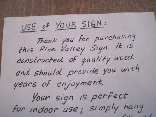 1: Wooden, handcrafted 3D sign, featuring sports theme with baseball/ bat, football, and basketball details. Medium walnut finished pine. Measures 11” wide, 22” tall, 1” deep. Originally made by Pine Valley Signs. Has mfr detailed label on the back side.