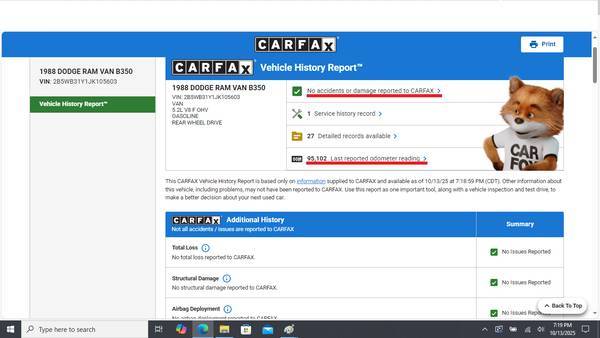 * 1988 DODGE RAM 35O 1-TON VAN *RUST FREE FROM SOUTHERN CALIFORNIA