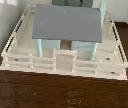All wood, great for Breyer horses Large, heavy,and solid Hand Painted light blue and white Meet for pick up, local only Asking 140.00