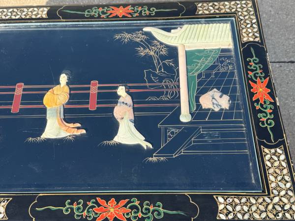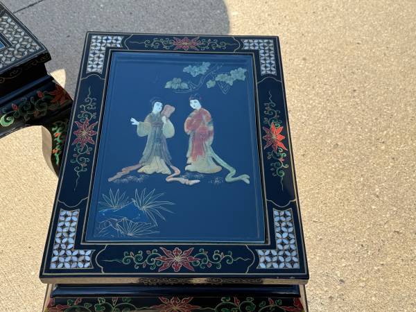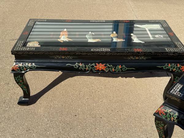 Very good shape, mild wear, and smoke free home. The legs on the coffee table can fold. Please see photo. Measures coffee table 43.5” x 22” and 18.5 inches tall and side table measures 17” x 22” and...