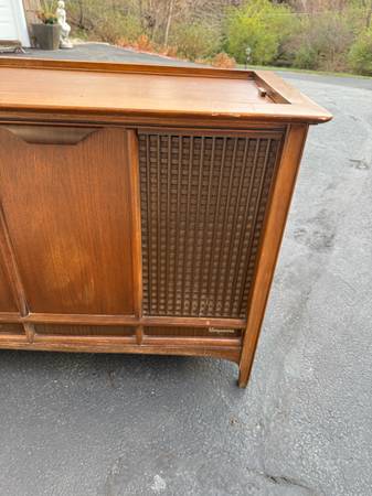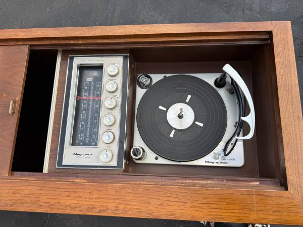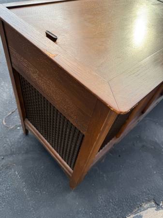 Good shape and smoke free home. Record player and radio work. Some scratches. Measures 66” x 20” and 28” Tall Pickup in Bettendorf or will deliver for a fee