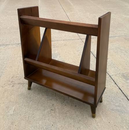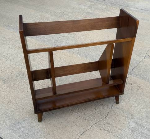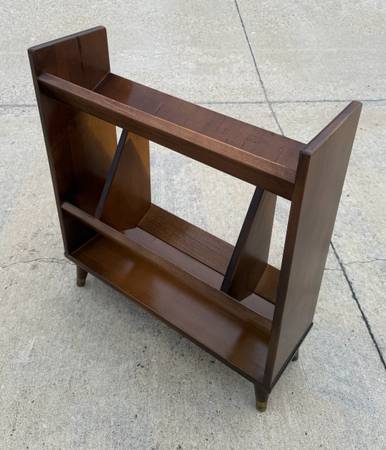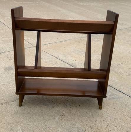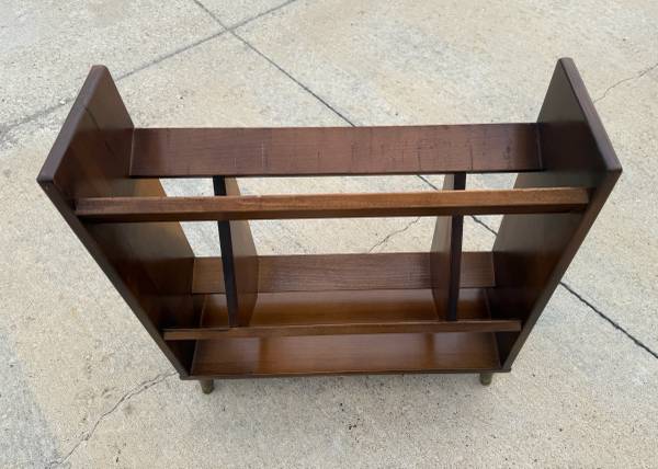 Good shape and smoke free home. Does have scratches and marks please see photos. Some discolouration in areas from where the sun hit. The top can hold records. Measures 27" x 8" and 27 inches tall and the center part is 12.5 inches tall.