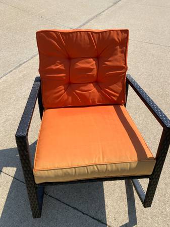 Chair is in like new condition and cushions are very clean but as you can see they have faded. Measures approximately 26” across Pickup in Bettendorf or will deliver for a fee. #4
