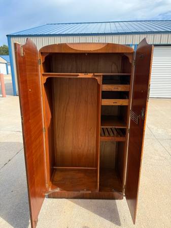 Very good shape and smoke free home. Missing the little keyhole hardware. Measures approximately 36 inches by 20.5 inches And 69.5 inches tall 6 Pickup in Bettendorf or will deliver for a fee.