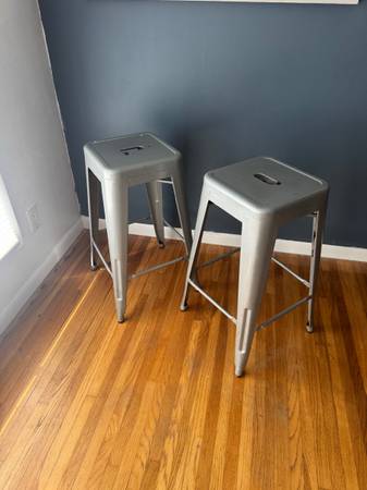 Industrial Metal Bar Stools (Set of 2) (Free Delivery 20 mile radius) Set of 2 sturdy industrial style metal bar stools. Classic Tolix inspired design, perfect for kitchen islands, reakfast bars, or...
