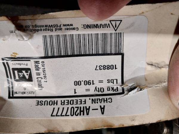 A-AH207777 Feederhouse conveyor chain, brand new, never installed, comes with master links fits 9400-9560STS $1000