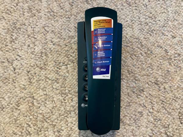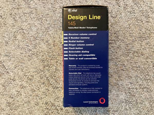 This phone has adjustment of incoming voice, 9 number memory, ringer volume adjustment, redial button, flash button, hearing aid compatible and can be used on wall or table. Original manual included. Phone is in original box and wrap. Never used! Include phone number if interested. Firm on price.