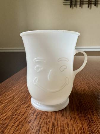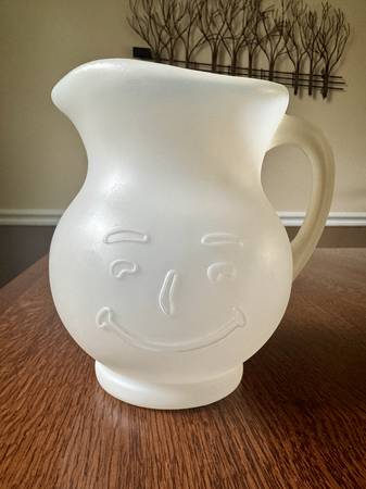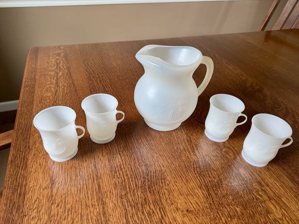 "Oh Yeah!" Take a trip back to the 80s with this vintage Kool-Aid Man 2-quart pitcher and four matching plastic cups. Great vintage condition. Asking Price: $40