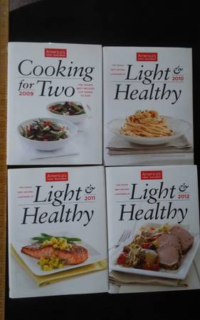 Three: Light and Healthy. years 2010- 2012 books, FIVE: Cooking for Two, years 2009- 2013. Barely used, some not used at all, all hard cover. All have Jackets. $3.00 each . Buyer pays shipping. Or picks up near Galesburg ill. Ships from my zip 61466. Each book close to 3 pounds each with packaging . I only ship to lower 48 USA states.