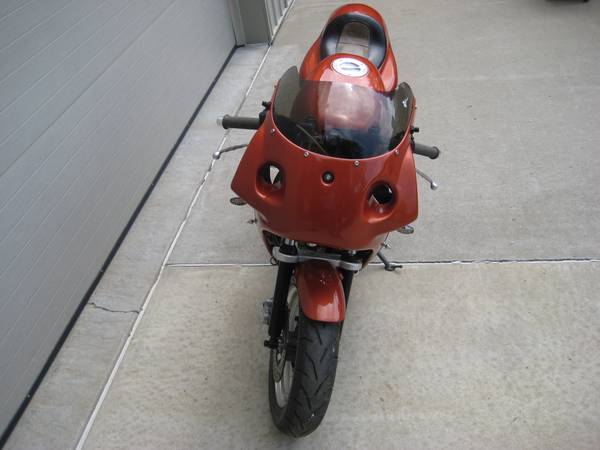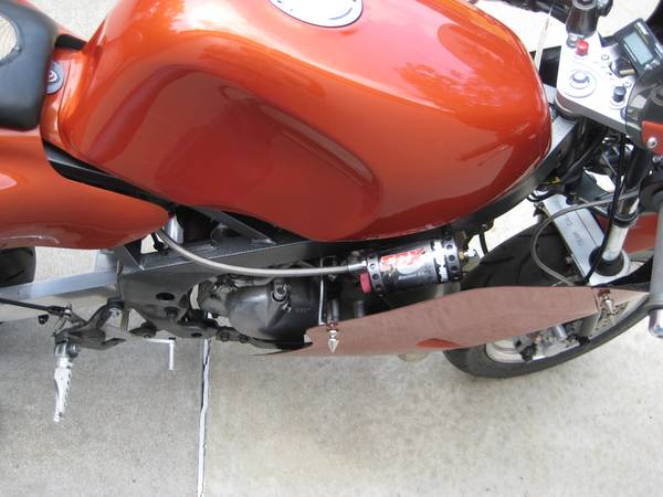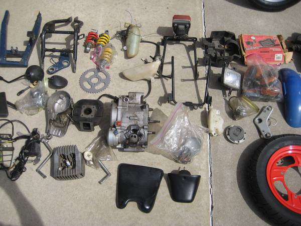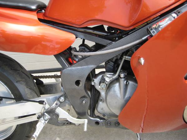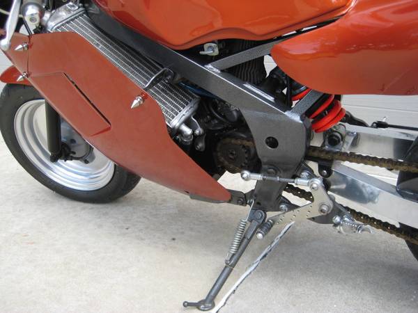 THIS MOTORCYCLE HAS BEEN HIGHLY MODIFIED AND THE LIST THAT I AM GOING TO PROVIDE WILL BE JUST THE HIGHLIGHTS. THE ENGINE HAS BEEN CHANGED TO A SUZUKI RM80 WATER COOLED 2 STROKE WHICH IS AN INCREDIBLE INCREASE IN POWER OVER THE STOCK ENGINE.