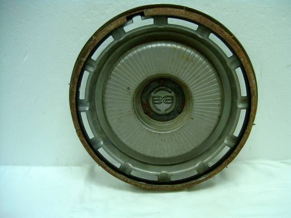 (2) CHEVROLET SUPER SPORT HUBCAPS I'M NOT SURE OF THE EXACT SIZE OF EACH RIM. I'VE BEEN TOLD THE SMALLER ONE ON THE RIGHT IS FOR A 1965 SUPER SPORT AND IT'S FOR A 14" THEY BOTH SHOW SOME WEAR DUE TO...
