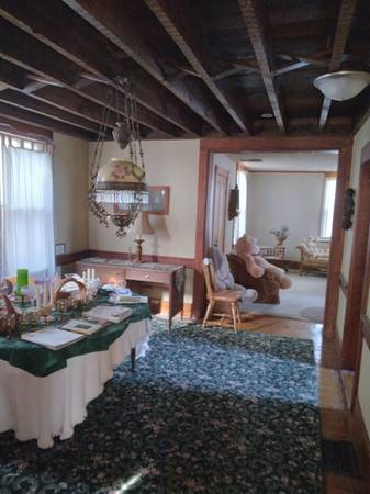 Historic Bishop Hill home with 2.5 acres, older 2 story home. Three bedrooms, one bathroom, beautiful grounds, apple, peach, pear, and plum trees. Connected to another 10 acres of prairie and gardens.