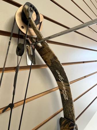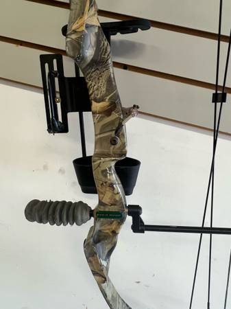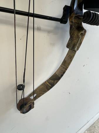 You are looking at a used, but still in GOOD CONDITION Camo Fred Bear Badge Youth Compound Bow. Feel free to ask any other questions.