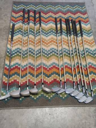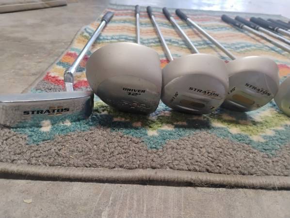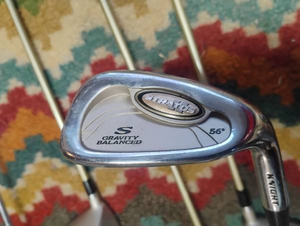 Stratos Knight II Gravity balanced set, 12 pcs. Light flex. Graphite shafts. Right-Handed. Golf bag included. Putter has steel shaft.