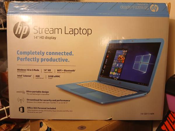 Aqua Blue HP Stream 14-cb111wm 14" Laptop, Windows 10, IntelCeleronN4000, 4GB Memory, 32GB eMMC Storage. Brand/Manufacturer: HP Product Line: HP Stream Laptop Model: 14-cb111wm Manufacturer Part...