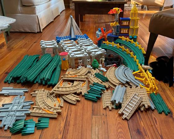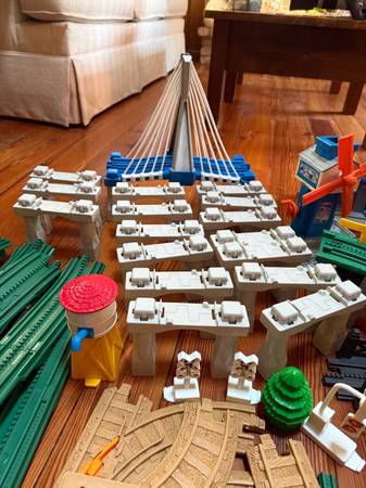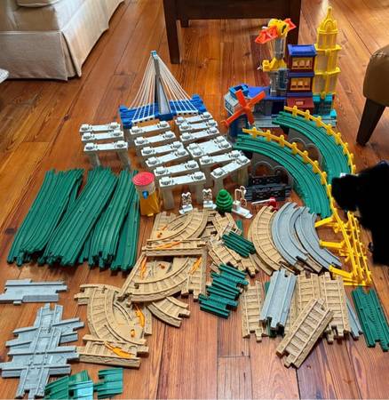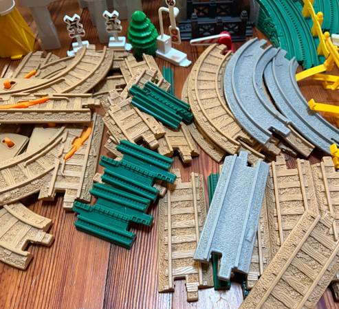 Good shape and smoke free home. Bridge lights up and Big City Lights Building lights up and makes sounds. You will get: Tracks 52 Curved ramps 2 Railings 3 Accessories 6 Lighted bridge 1 Gray bridge...