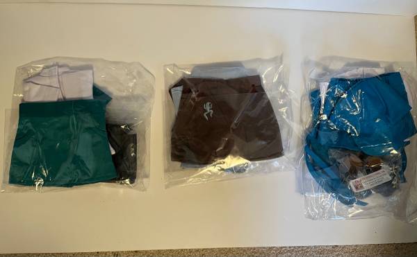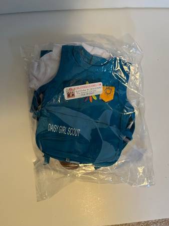 Daisy Scout, Brownie Scout and Girl Scout uniforms for 18” dolls. New in packages; complete; purchased in 2012-2013. Recent uniforms have no shoes; these have shoes. Daisy uniform-hat, shirt, vest,...