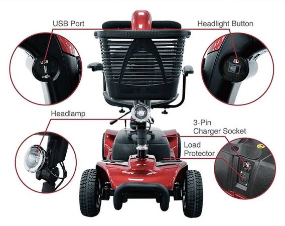 Equate Mobility 4-Wheel Motorized Power Scooter, Red